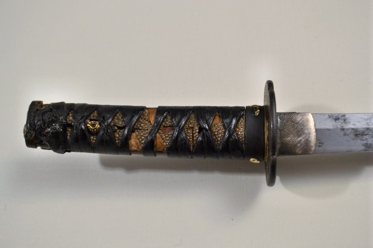 This wakizashi dates from the Shinto era (late 16th century to mid 18th), and could perhaps be older as it was cut down from a longer blade.