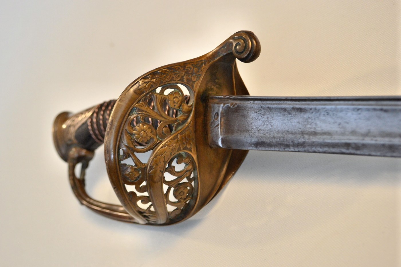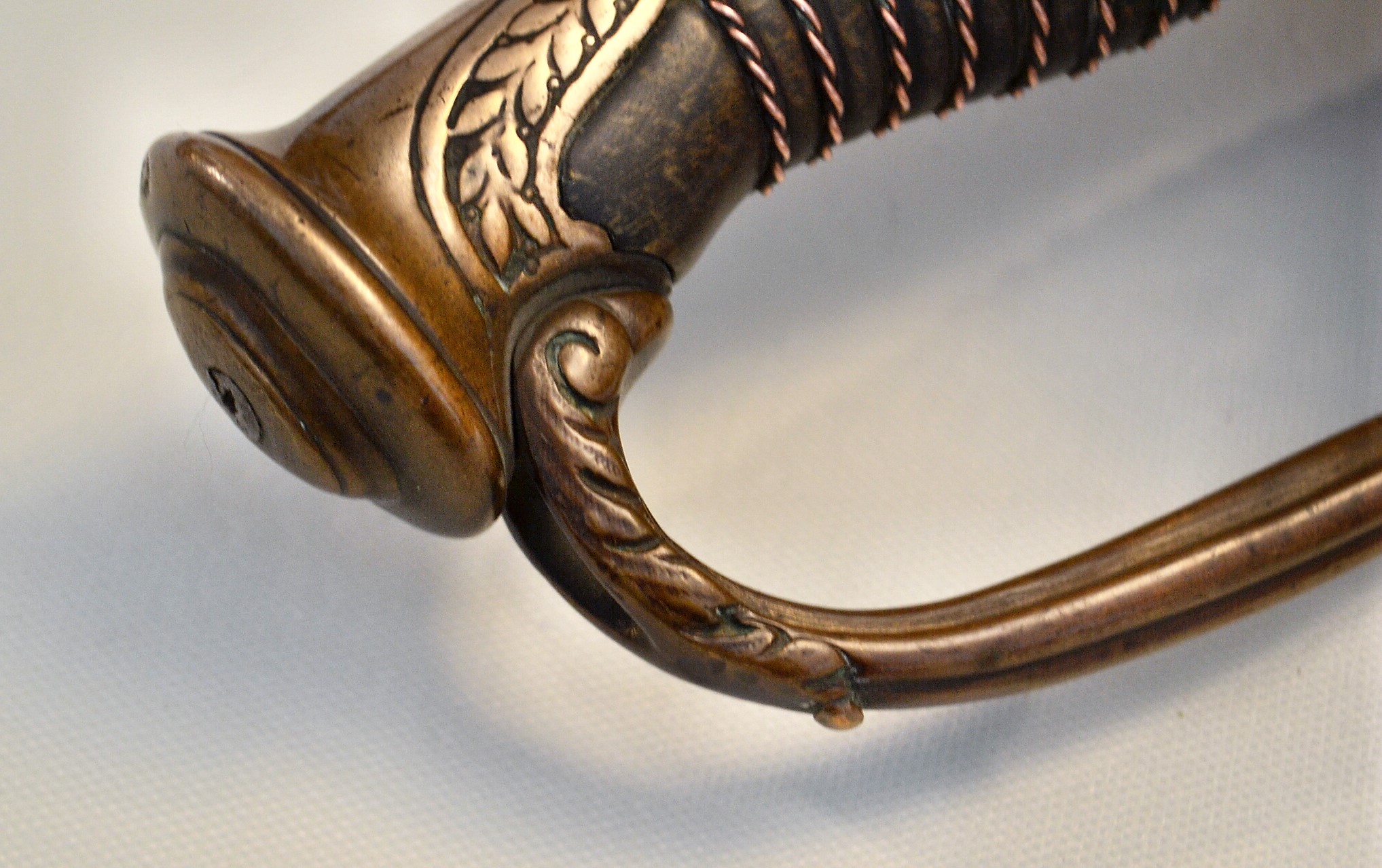 What really sets it apart is the uncommon combination of a regular officer blade with a superior officer guard. The guard is also different from most superior models for the presence of an extra decoration item near the base of the branch. Such combinations are not unheard of but are very rarely seen.