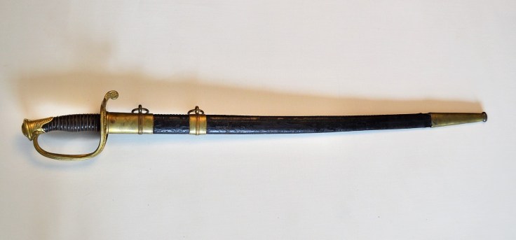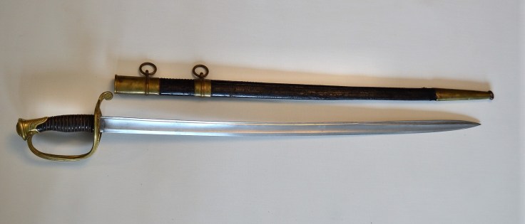 For sale this very high end version of an 1845 infantry officer sabre made by Coulaux of Klingenthal. Unusual for a Klingenthal piece, this sabre is of very fine craftmanship, with a highly detailed guard, very crisp lines on a robust blade, nice coiled original grip wiring and a high quality scabbard to go along with it.