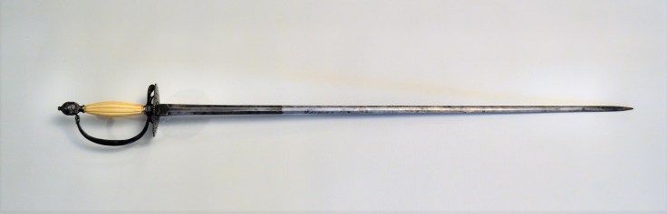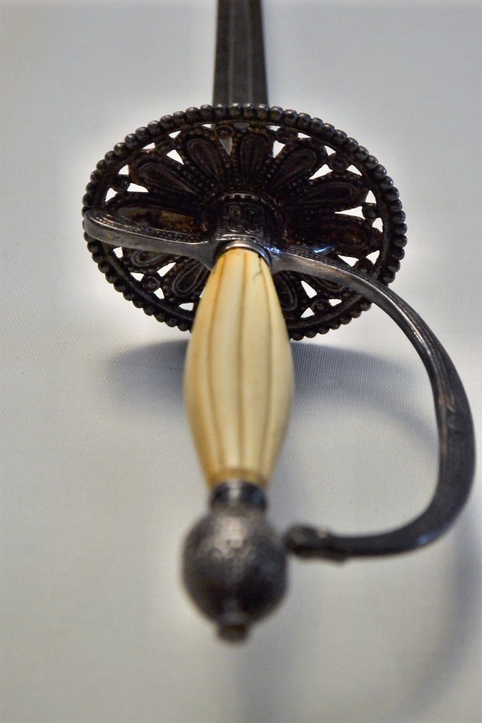 This is a great example of a late smallsword made around the second half of the 19th century in Germany. The hilt is silver, or silver plated and the grip is made of ivory, a very unusual material. The hilt and guard are very elaborately decorated.
