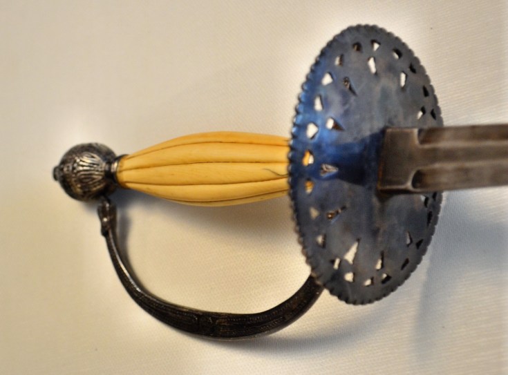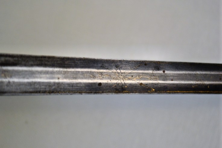 The blade is blued on the foible with remnants of gilt in the various engravings. The whole sword would be quite easily associated with the late 18th century, if it wasn’t for the swordsmith’s hallmark of Clemen and Jung from Solingen who were active fro 1860 until 1999. Althoug the maker had an extensive history, the blade is most likely from the 19th century because of the presence of elephant ivory which mostly fell out of use in swordmaking in the early 1900s.
