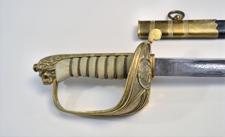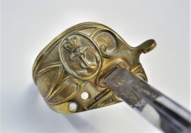This is a picket weight version of a classic 1845 Navy Officer Sabre made by Wilkinson and bought by the Royal Canadian Navy in 1957. Such sabres were called pusser sabres, and usually lended to warrant officers. The blade is a high quality example marked to Elizabeth II and could still be carried by a current officer serving in most countries of the Commonwealth. The beautiful frost etching is in pristine shape as is the rest of the blade.