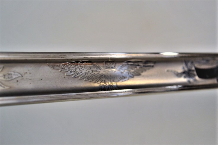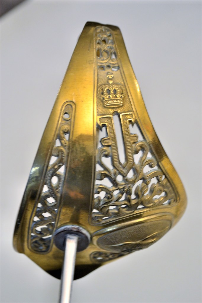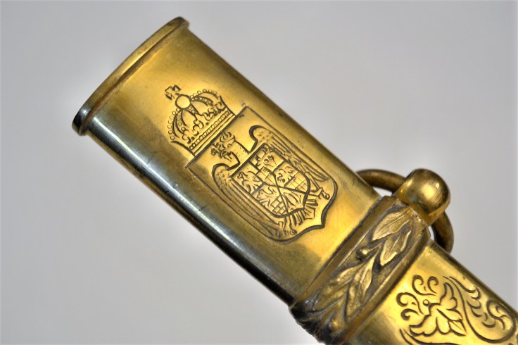 This sword is in pristine condition, with only a few scuff marks to the scabbard’s leather. It exhibits most of the same elements as the British models, with a few exceptions such as Ferdinand’s monograms.