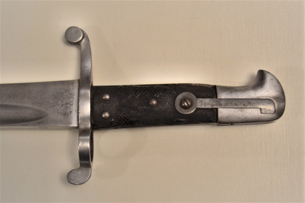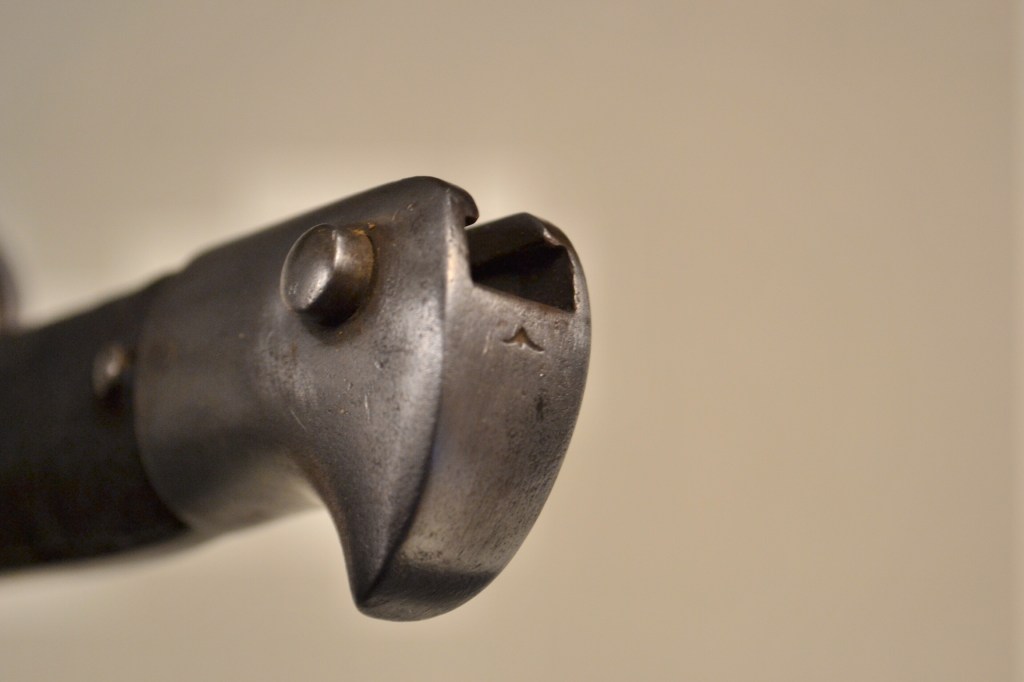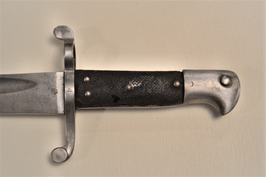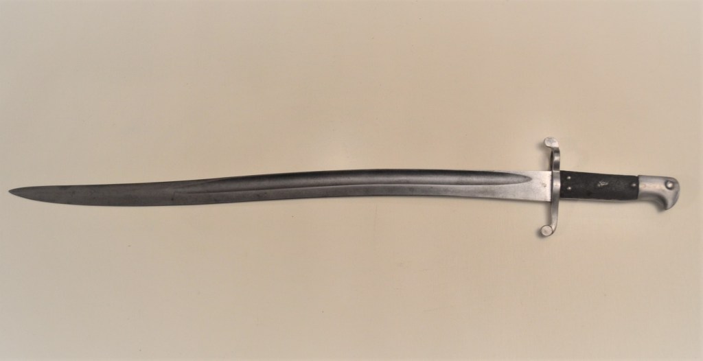 A good and clean example of an 1856 sabre bayonet, or as it is called today a yataghan bayonet. It was originally made for the Enfield rifle, and later adapted to the Martini Henry. The leather on the grip is worn out, but very solid. No scabbard.