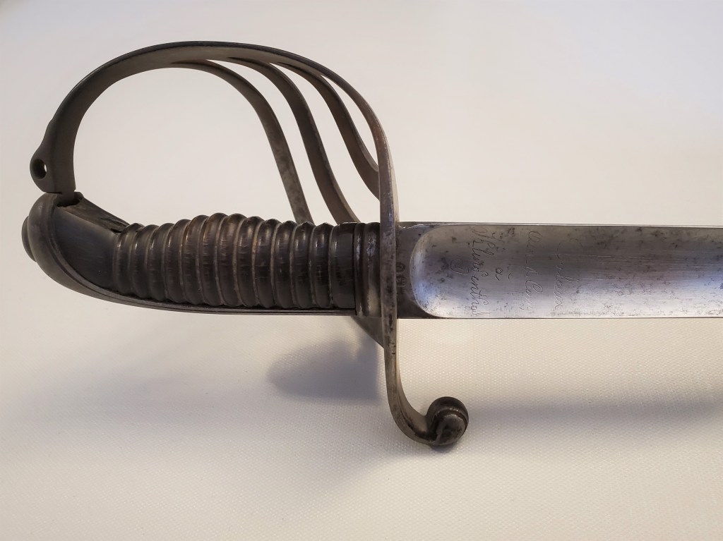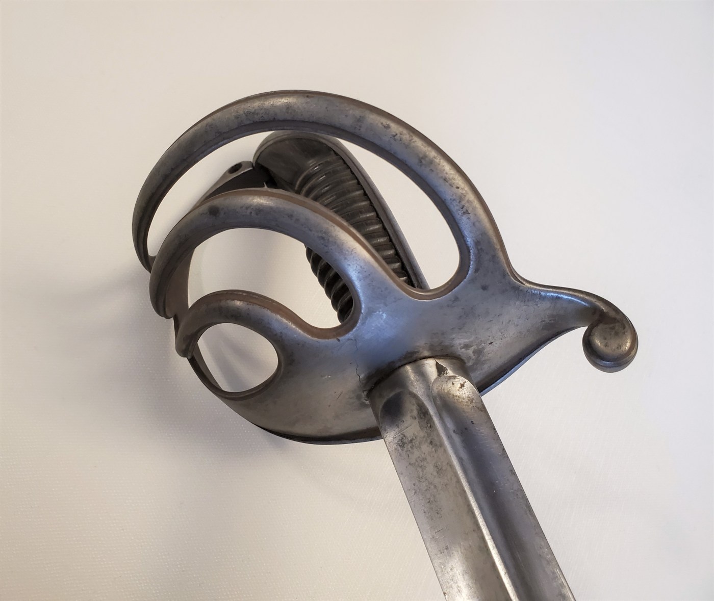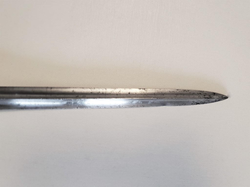 The sabre was probably made for a Heavy Cavalry officer judging by the length of the blade at exactly 1 metre long. It was made by Couleaux of Klingenthal around 1840 based on the poincon and maker’s mark.