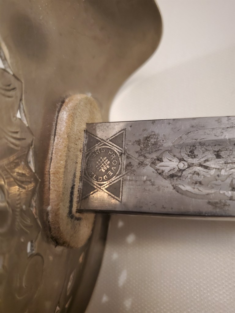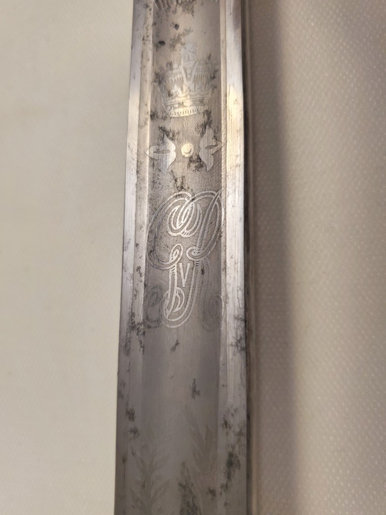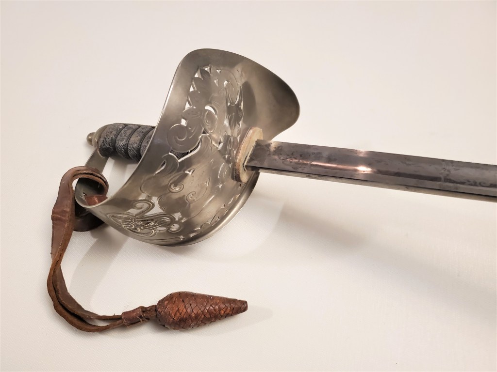 This is a very typical example of the swords produced for officers during the First World War era. Due to the rush of new recruits and the ressource needs, it is possible that Sheffield knife maers were commissioned to produce swords as well.