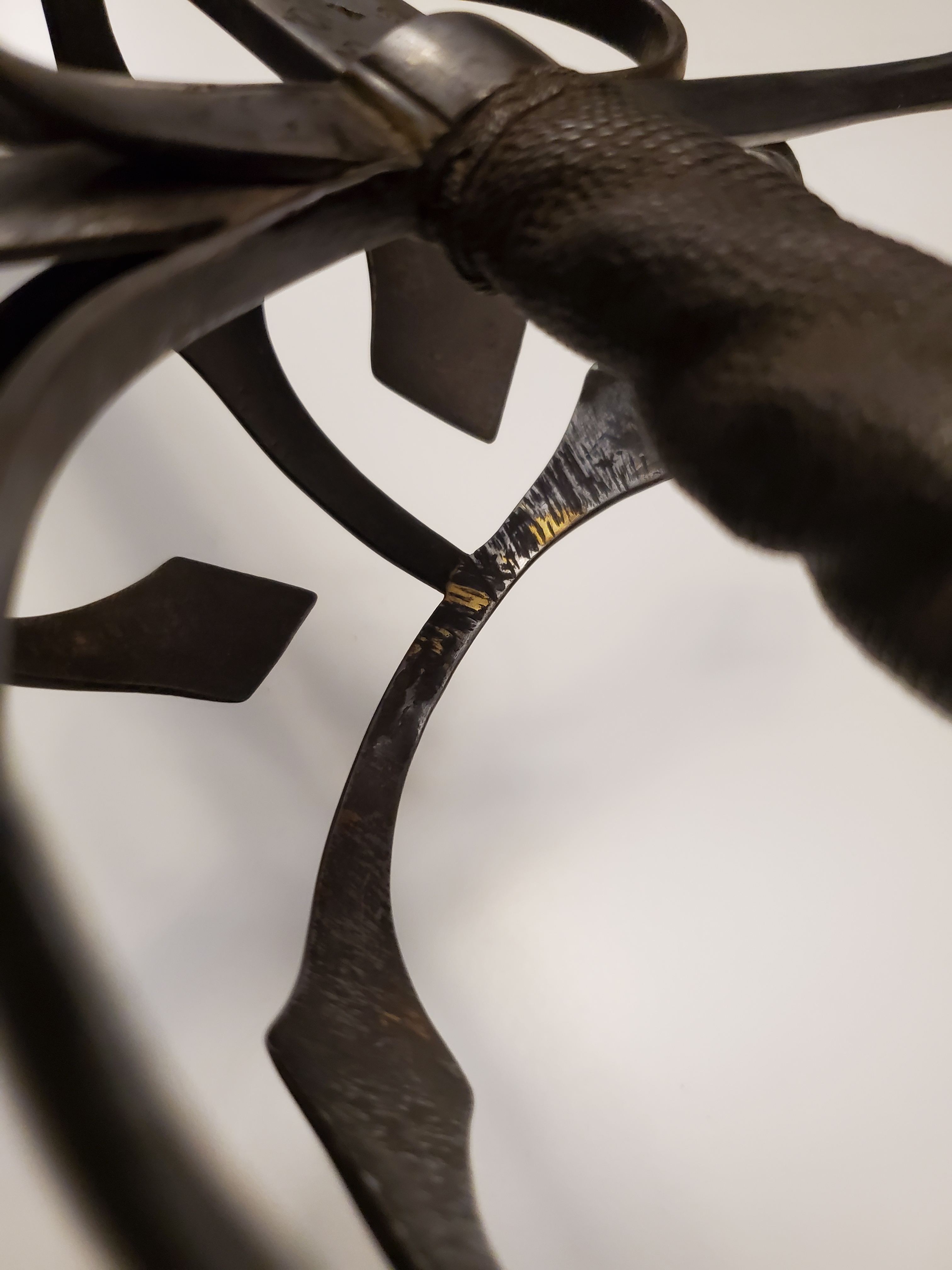 The whole sword is fairly long and massive, but was carefully put together and still maintains a good balance. The steel wire grip is splendid with it’s helix shape.
