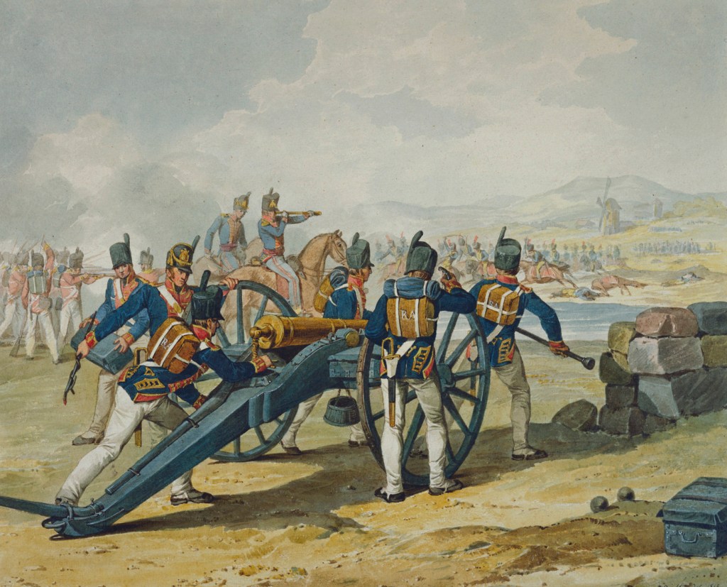 For sale, a fairly elusive “Spanish pattern” worn by artillerymen of the British Army during the Napoleonic wars. This pattern was introduced during the Peninsular war, hence the name, and was carried until 1826.