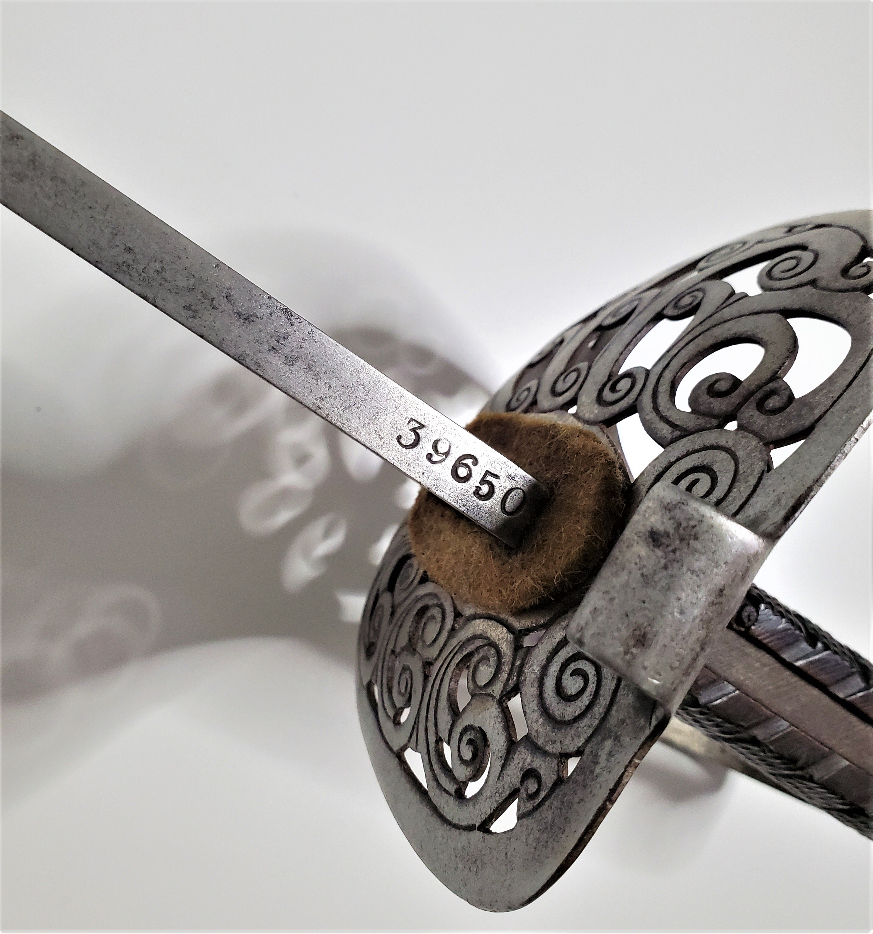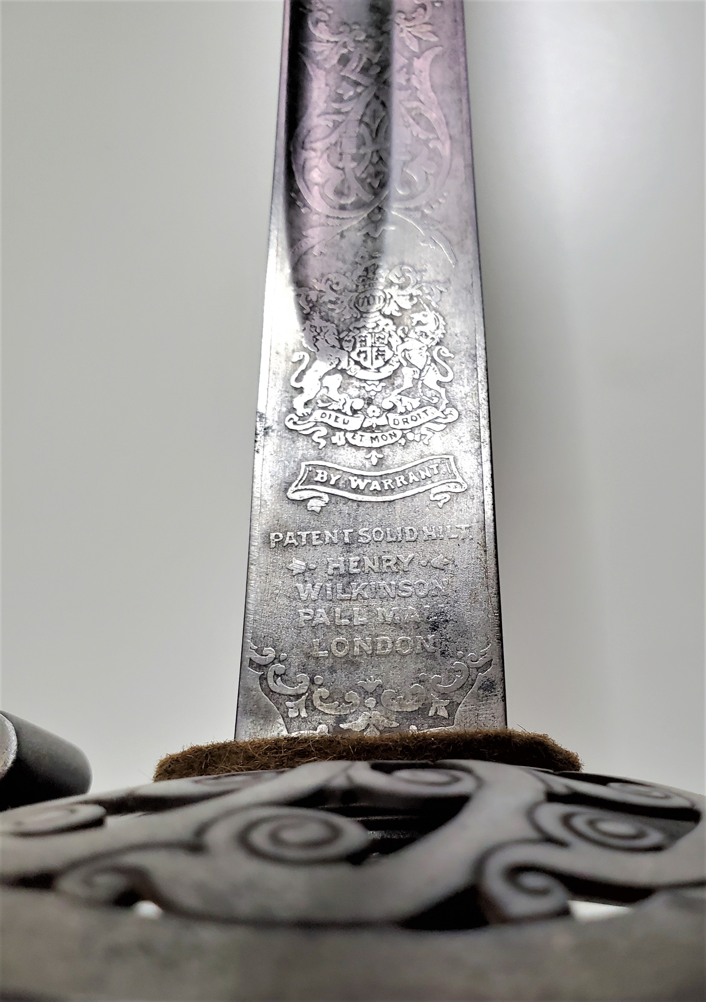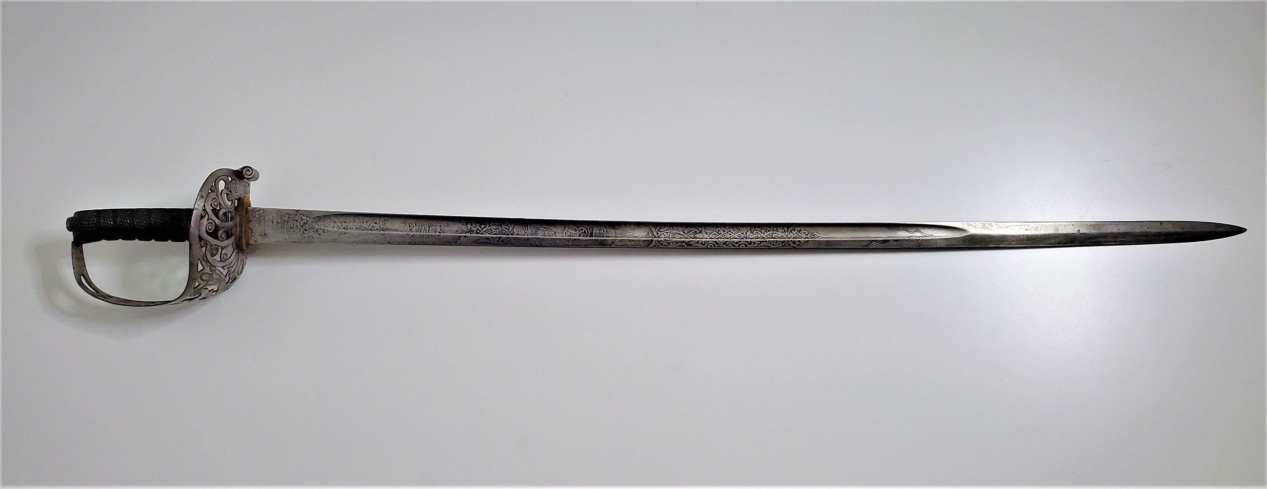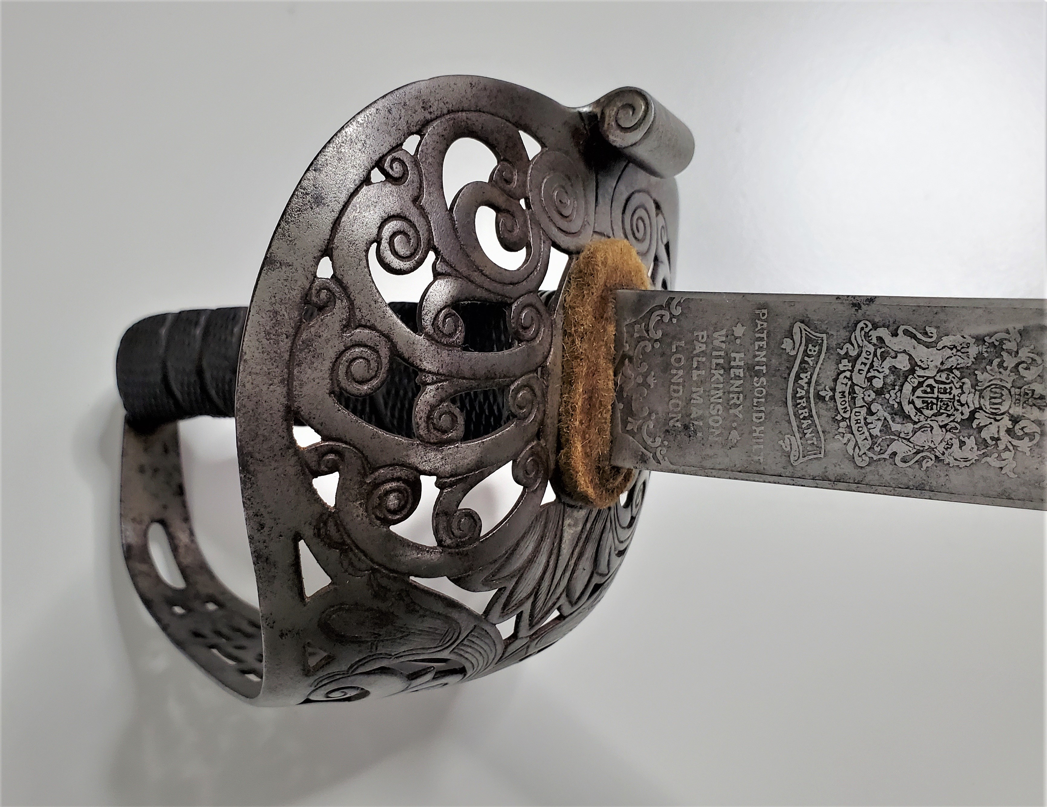 For sale a patent solid hilt of an 1896 pattern cavalry officer sword. This specific one was carried by Major John Heywood Jocelyn McClintock. Major McClintock was a lieutenant in the 18th hussars during the Second Boer War, and subsequently became a major in the 2nd life guard during the First World War.
