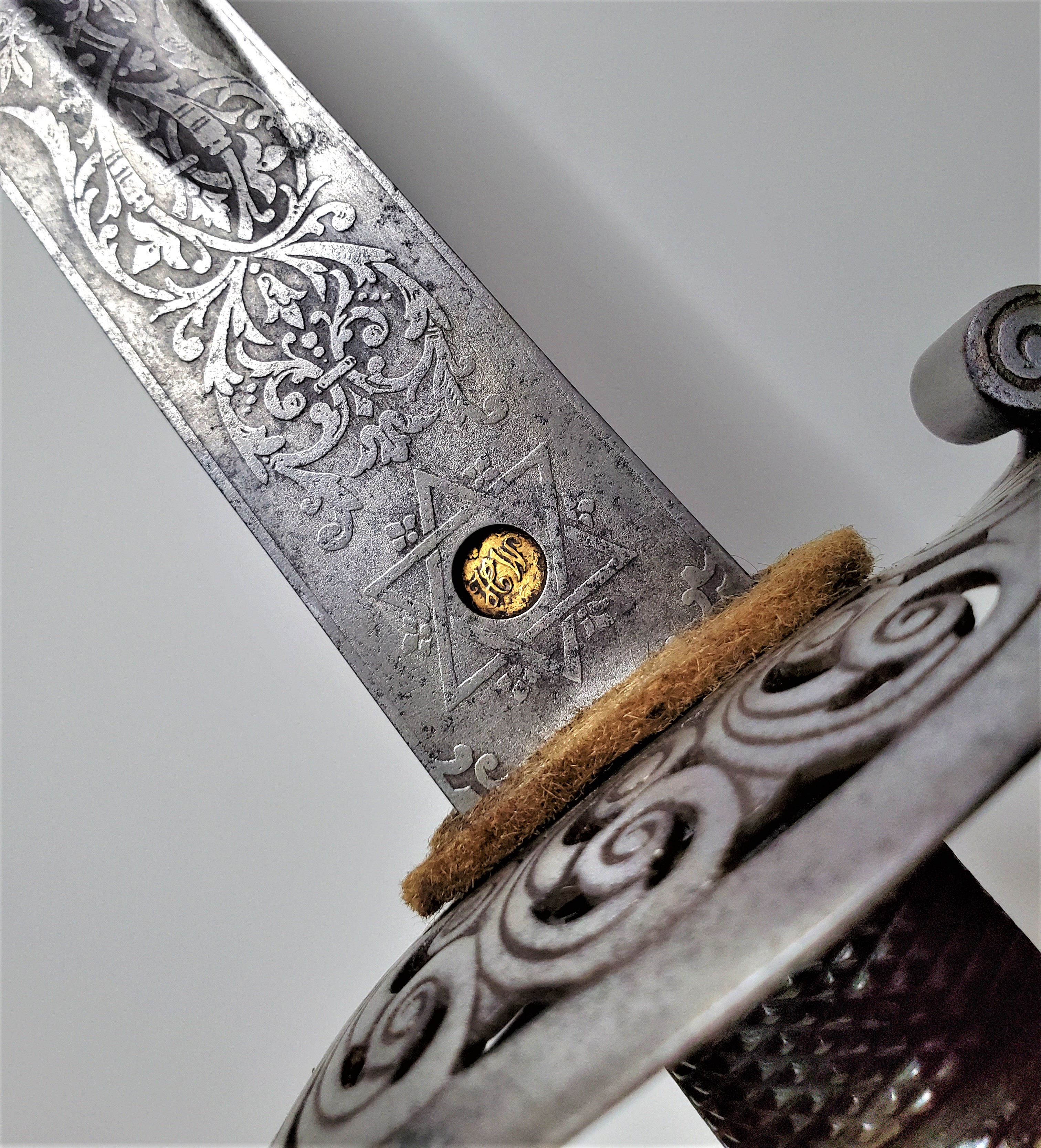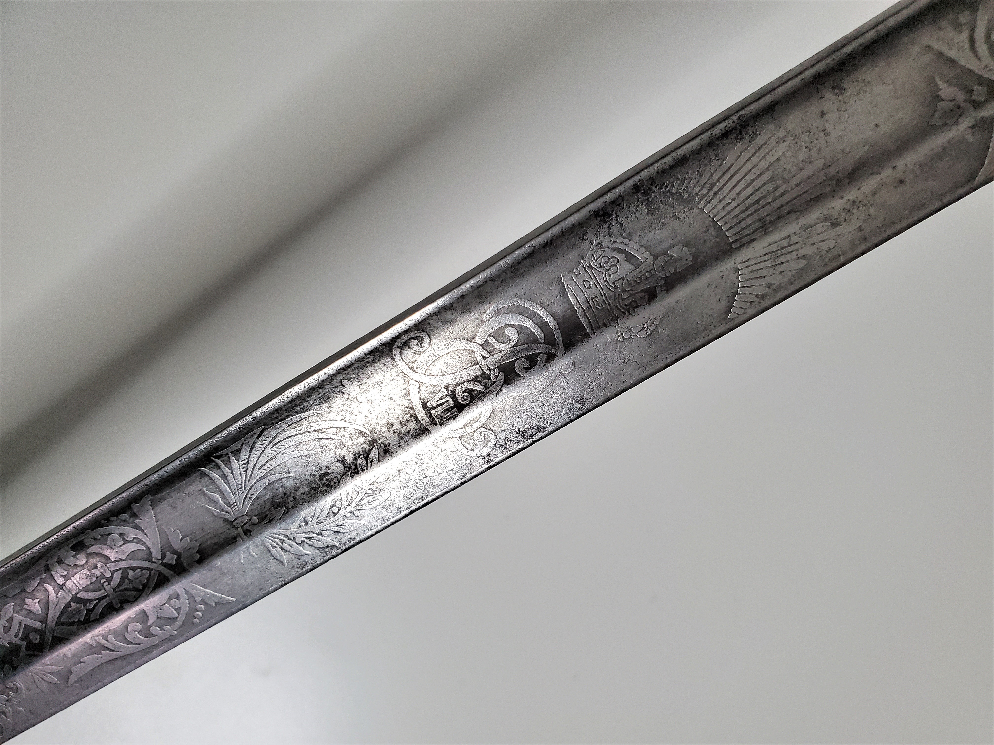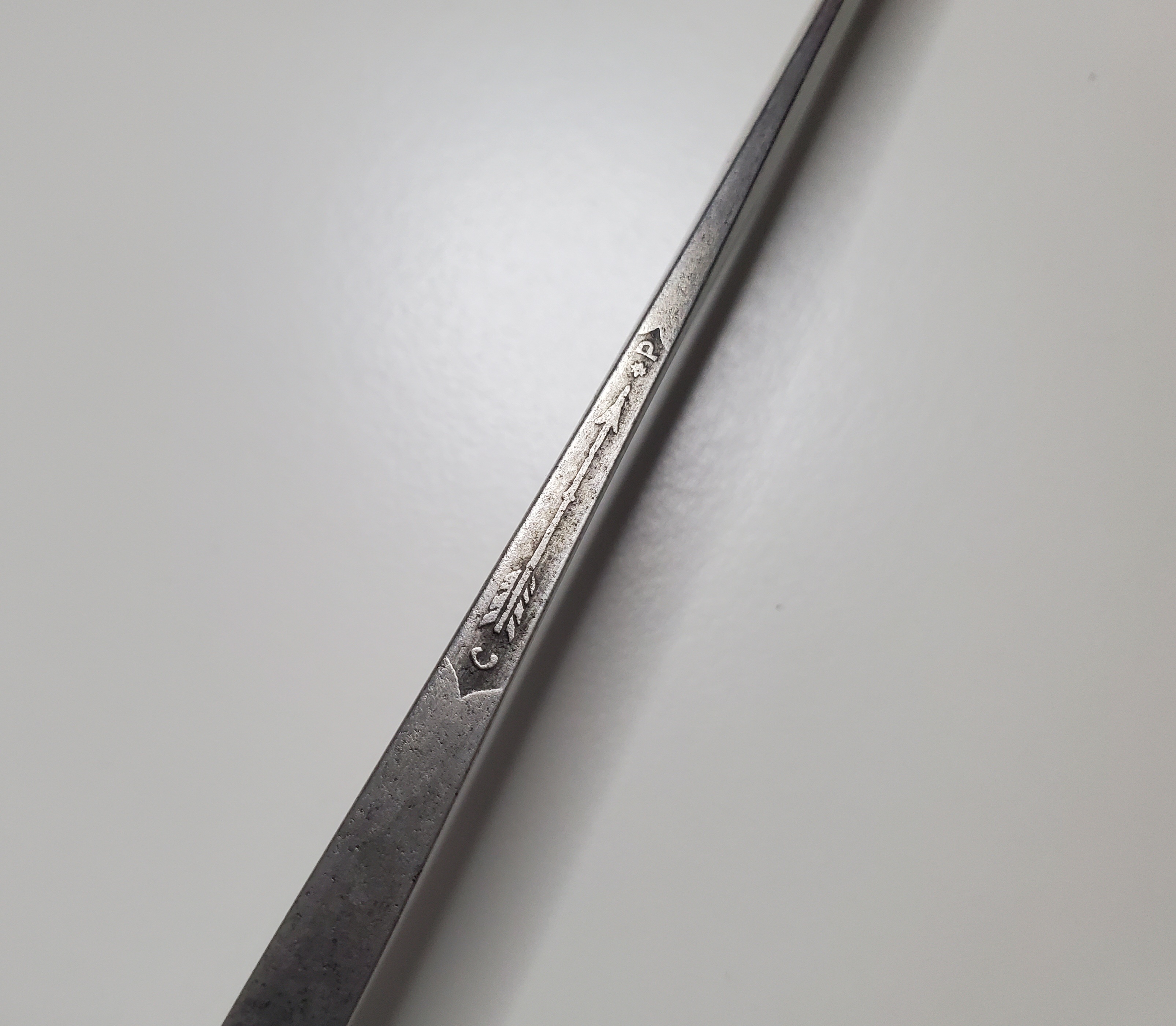 This sword was sold after his return to Ireland following the Boer War, so possibly as an homecoming gift. It was service sharpened, probably for WW1. The blade bears the crest of the 18th hussars, as well as McClintock’s initials.