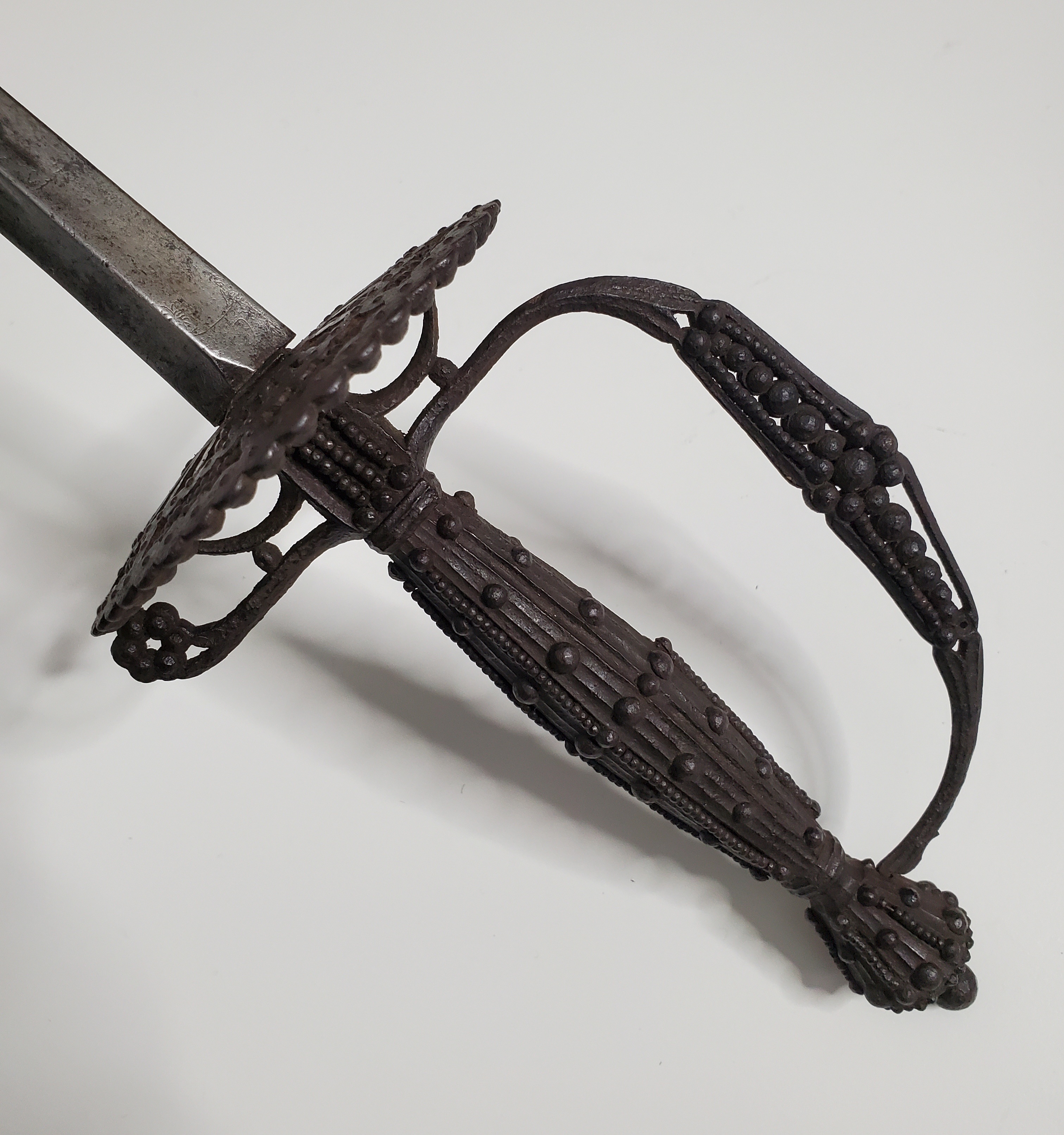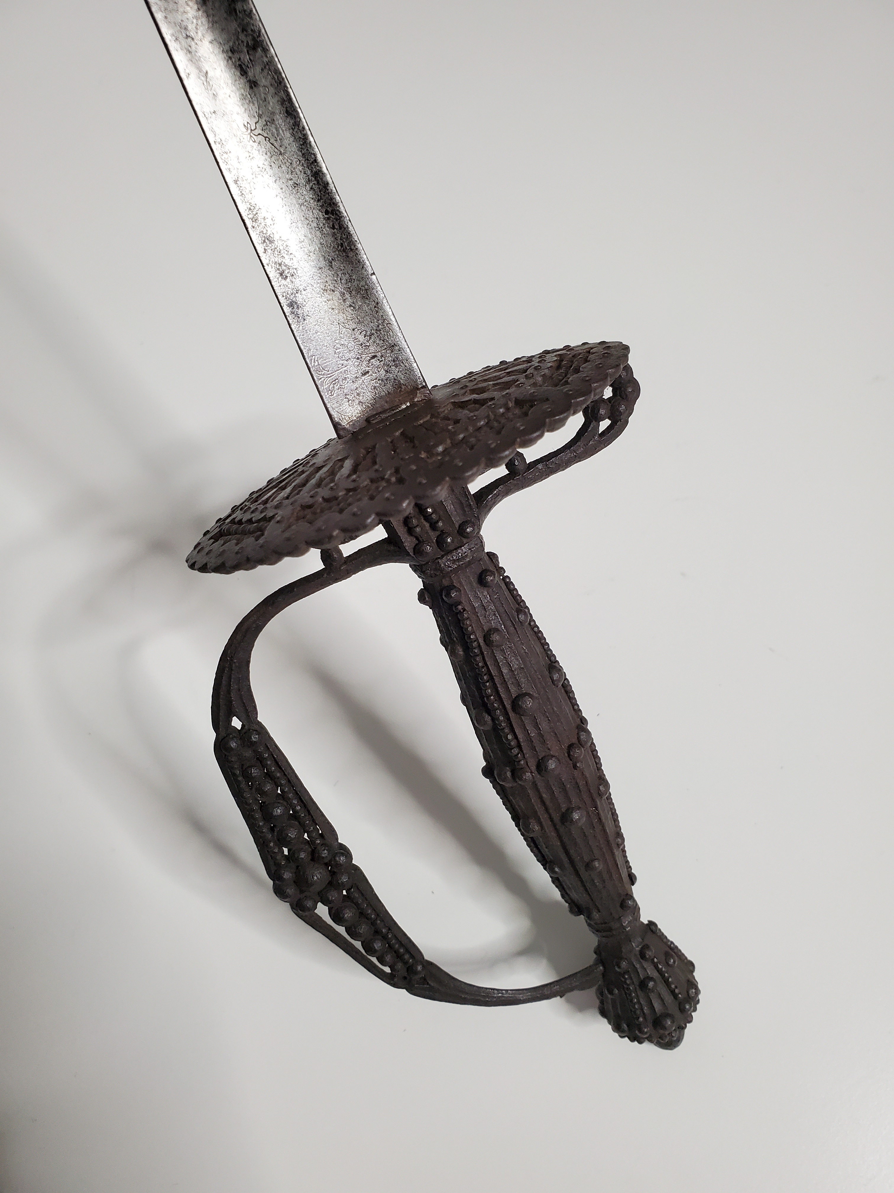 The blade is rather short, but does not appear to have been shortened. There is some pitting, particularly around the tip. The hilt is very solid with no movement.