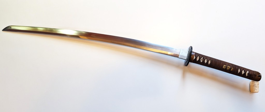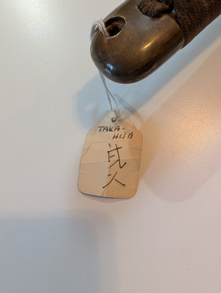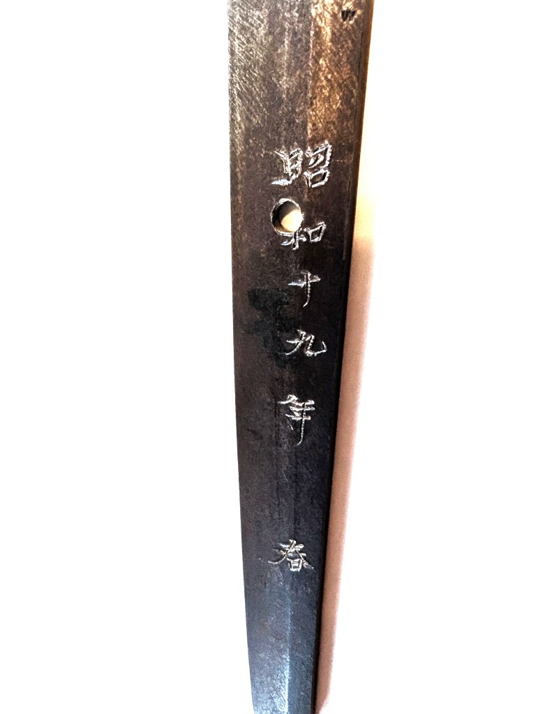 This WW2 gunto was made by the swordsmith Takehisa in the spring of 1944. The blade also bears the scarce “W” stamp.