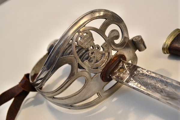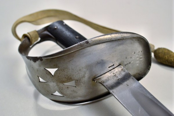 This Rifles sword was made in the reign of George V, and most possibly was used in the First World War. It was sold by R.J. Inglis, who had shops at the time in Montreal and Winnipeg. The sword is very solid, with no rattle. Except for some speckles of corrosion on the forte, the... Continue Reading →