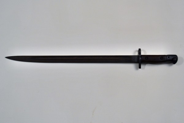 This 1907 bayonet was made for the Enfield SMLE by Wilkinson in 1927. It still bears its original blued steel finish.SOLD
