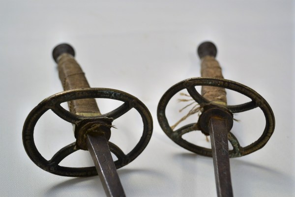 This pair of late 19th century foils were made in Klingenthal by the Coulaux company. The hilts are slightly loose, which could be fixed. SOLD