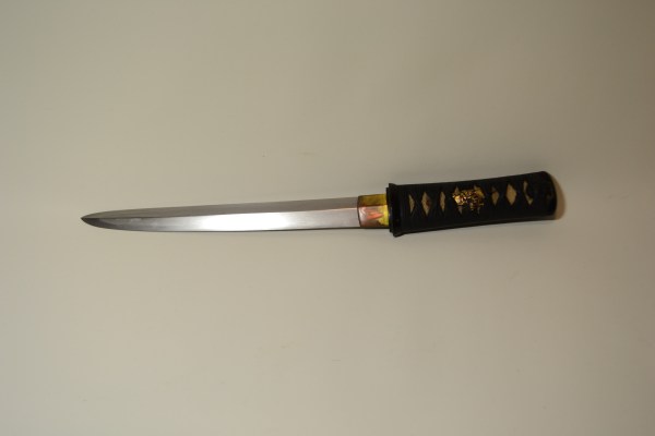 For sale, this Moroha Zukuri tanto possibly from the late 16th century to the late 17th century. The piece sits in a very nice and tight koshirae with horn kashira, tsuba and kojiri. It could fit in a companion piece which is missing, and has some very discrete cracks on the saya that don't distract... Continue Reading →